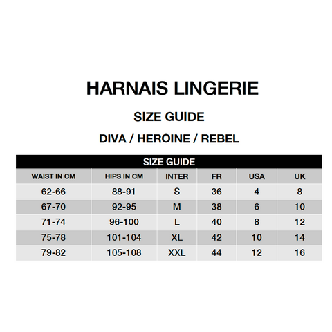 From the front, this harness looks simple and comfortable with its elastic waistband and second skin design. When viewed from the back, the Heroin is transformed into a chic and sexy lingerie with its adjustable straps.