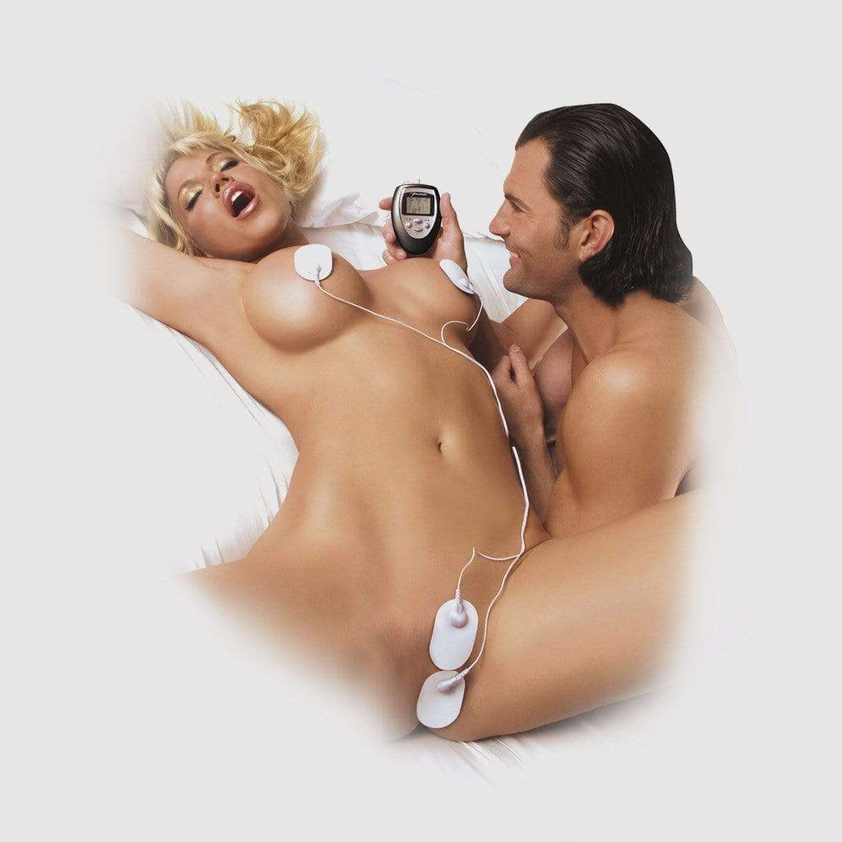 This electric stimulation Shock Therapy kit is perfect for first-timers and those new to e-stimulation. The easy-to-read LCD screen on the digital power control unit clearly displays the function and intensity level, and with 3 pre-programmed pulsation patterns to choose from, this attractive control unit sends electric impulses to whichever body part you place pad on.