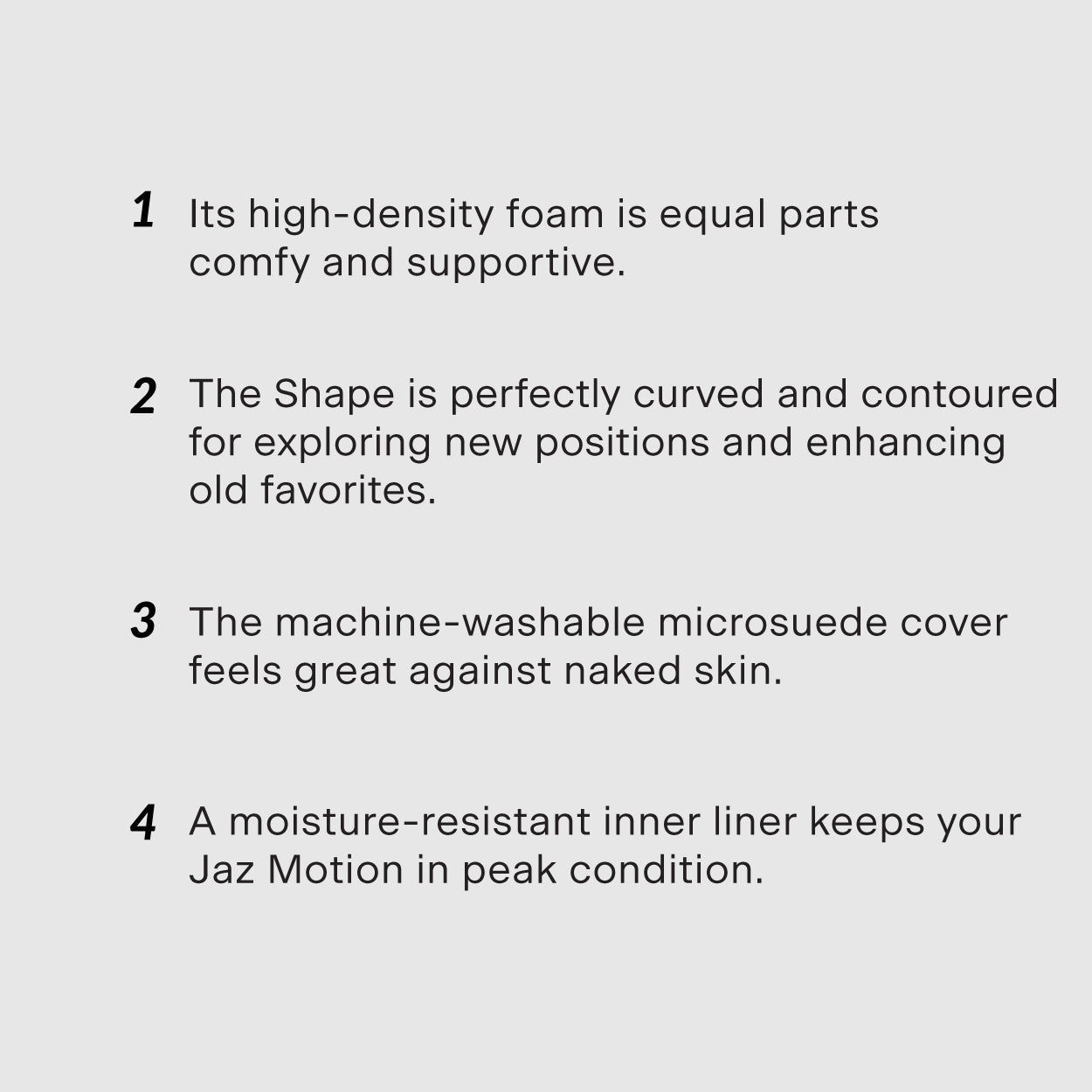 The Jaz Motion sex pillow is compatible with a variety of sex furniture products. Head on over to our position guide for even more sexual inspiration.