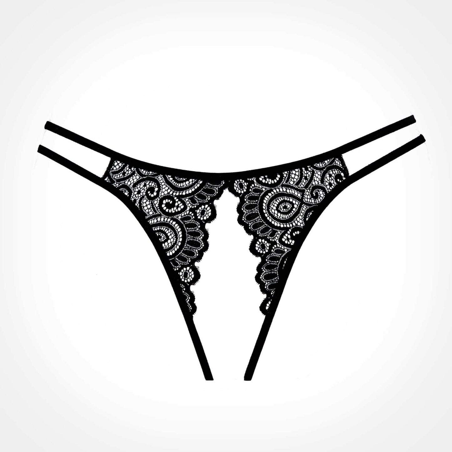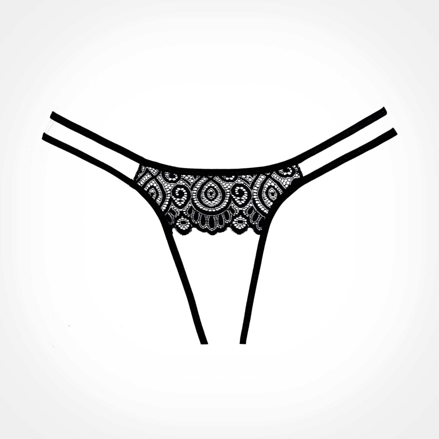 Your heart skips a beat in this delicate galloon lace panty, giving more than a peak in front, while shamelessly flirting in the ultra ouverte back.