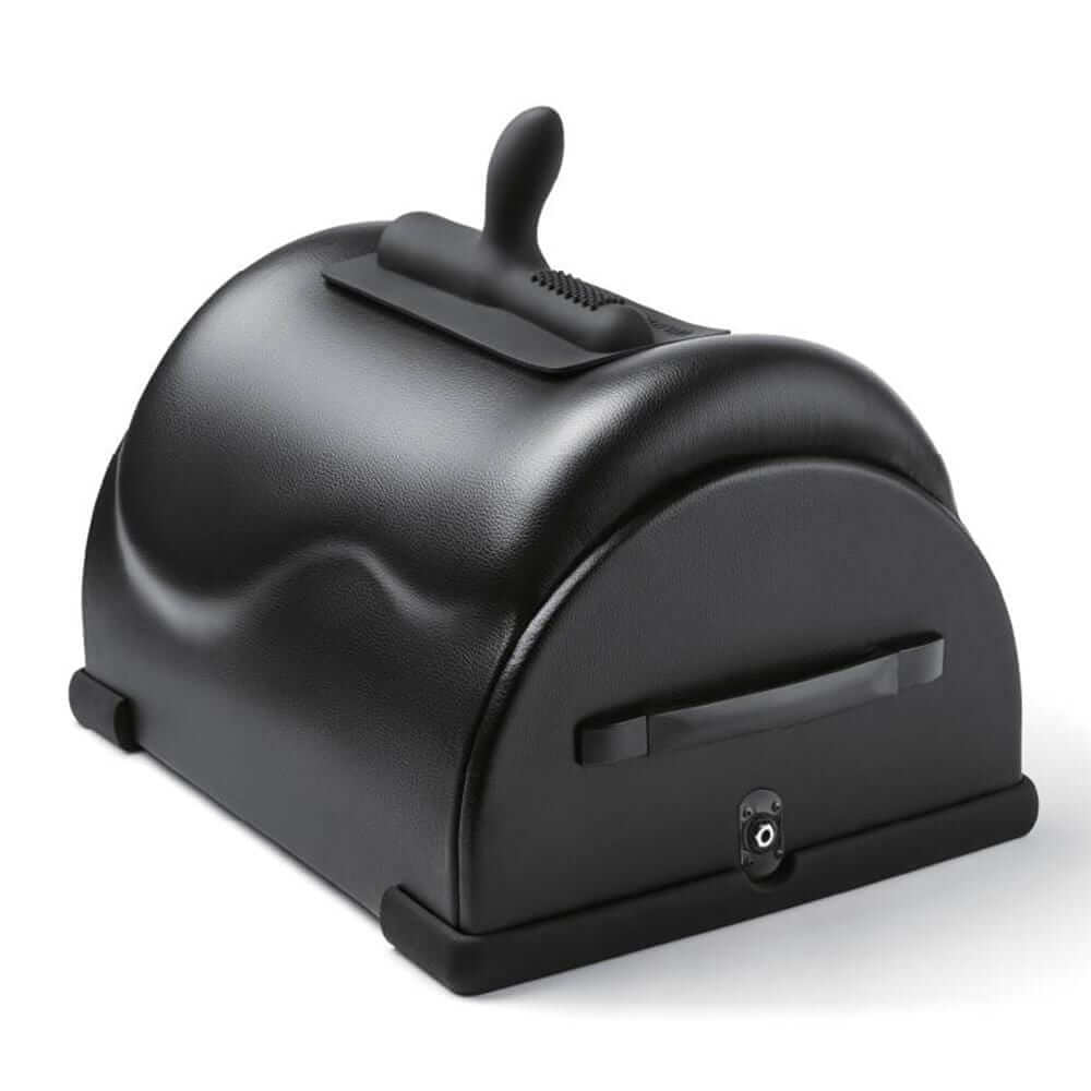 Cowgirl Premium Sex Machine from B-Vibe. With its powerful stance, sophisticated aesthetics and state of the art technology, The Cowgirl is a modern, luxurious sex machine that offers the ultimate sexual experience. The thoughtful design redefines stimulation through the versatile use of fully independent vibration and rotation control featuring 6 vibrating patterns and 360 swivel rotation with low to high variable speeds. This premium product embodies empowered sexuality, decadent self pleasure and perfect amount of kink. Independent vibration and rotation control. 6 vibrating patterns and 360 swivel rotation with low to high variable speeds. Handcrafted saddle seat with comfort padding. Made of easy to clean vegan leather. Precision engineering and 1200 rpm of ultra powerful vibrations. Slip resistant silicone base for added stability and protection from scratching. Holds up to 400 pounds. Durable handles for easy transport. 10 feet power cord, adaptable for global use. Body-safe silicone attachments included. Two ways to control: corded remote or smart phone. No assembly required.
