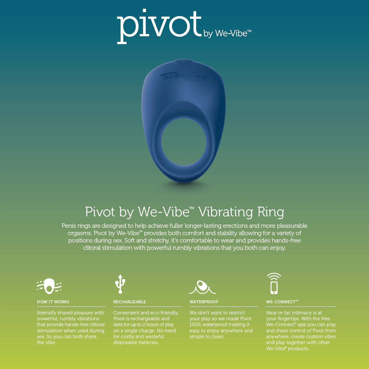 With the free We-Connect™ app you can play and share control of Pivot from anywhere, create custom vibes and play together with other We-Vibe® products.